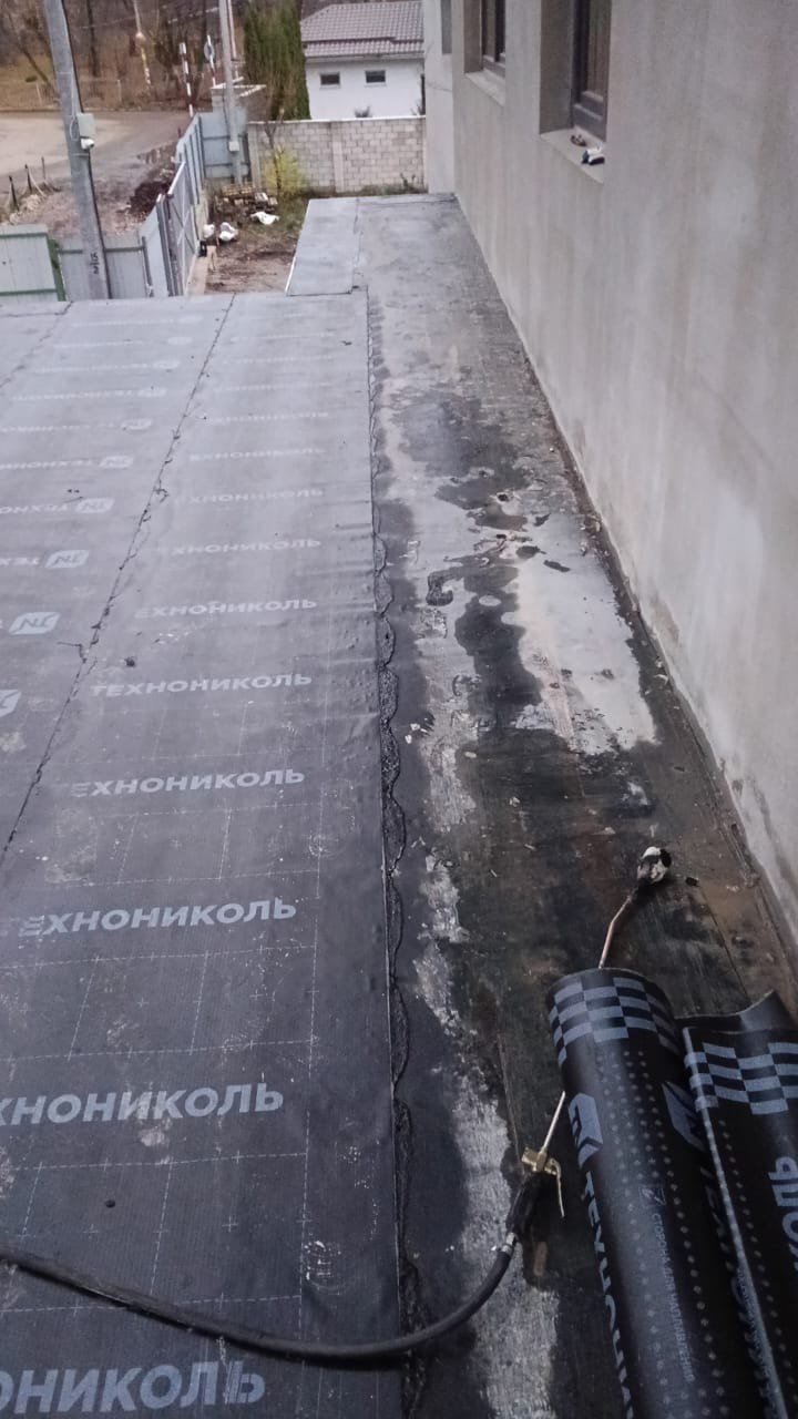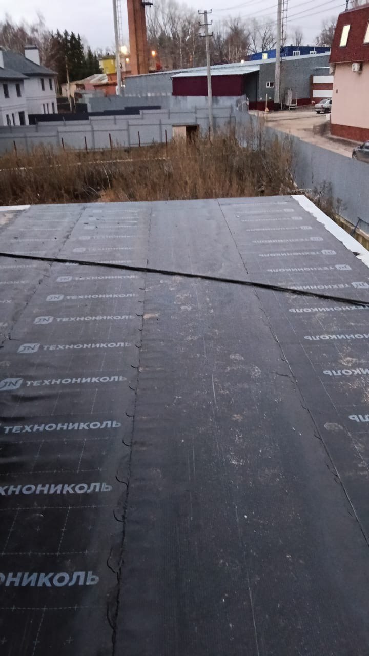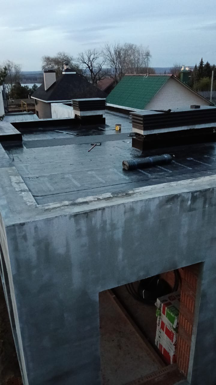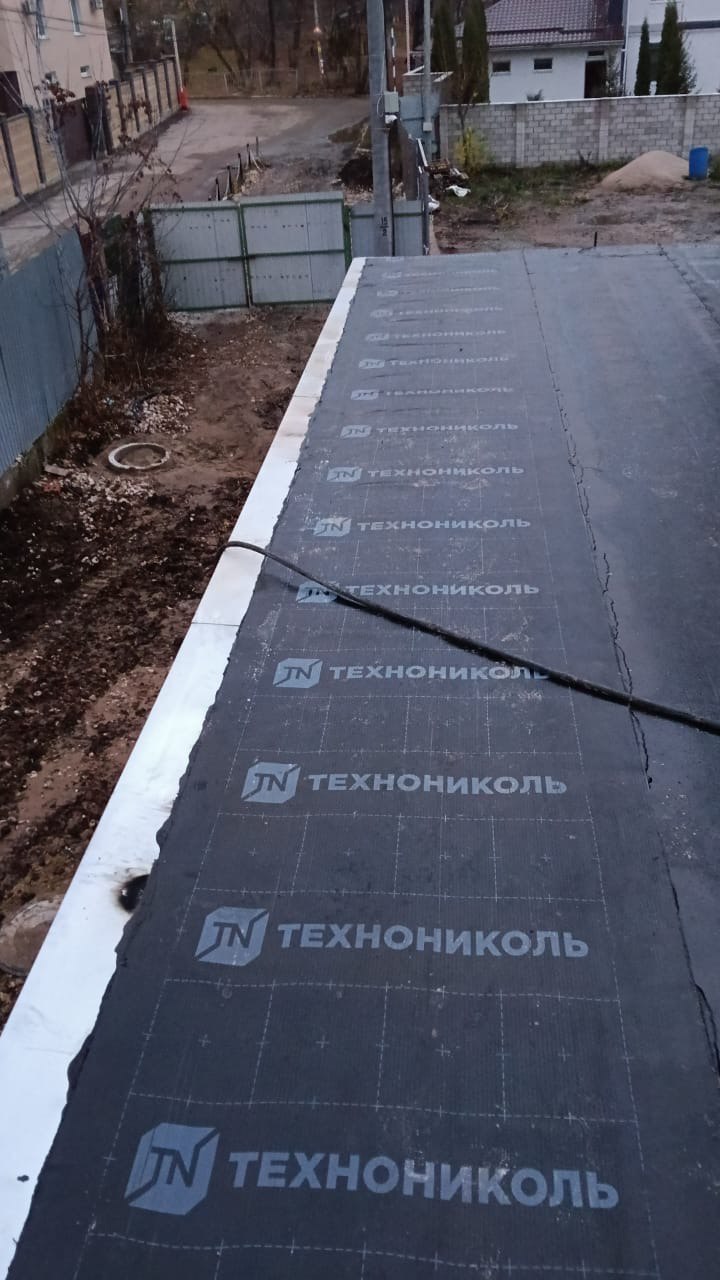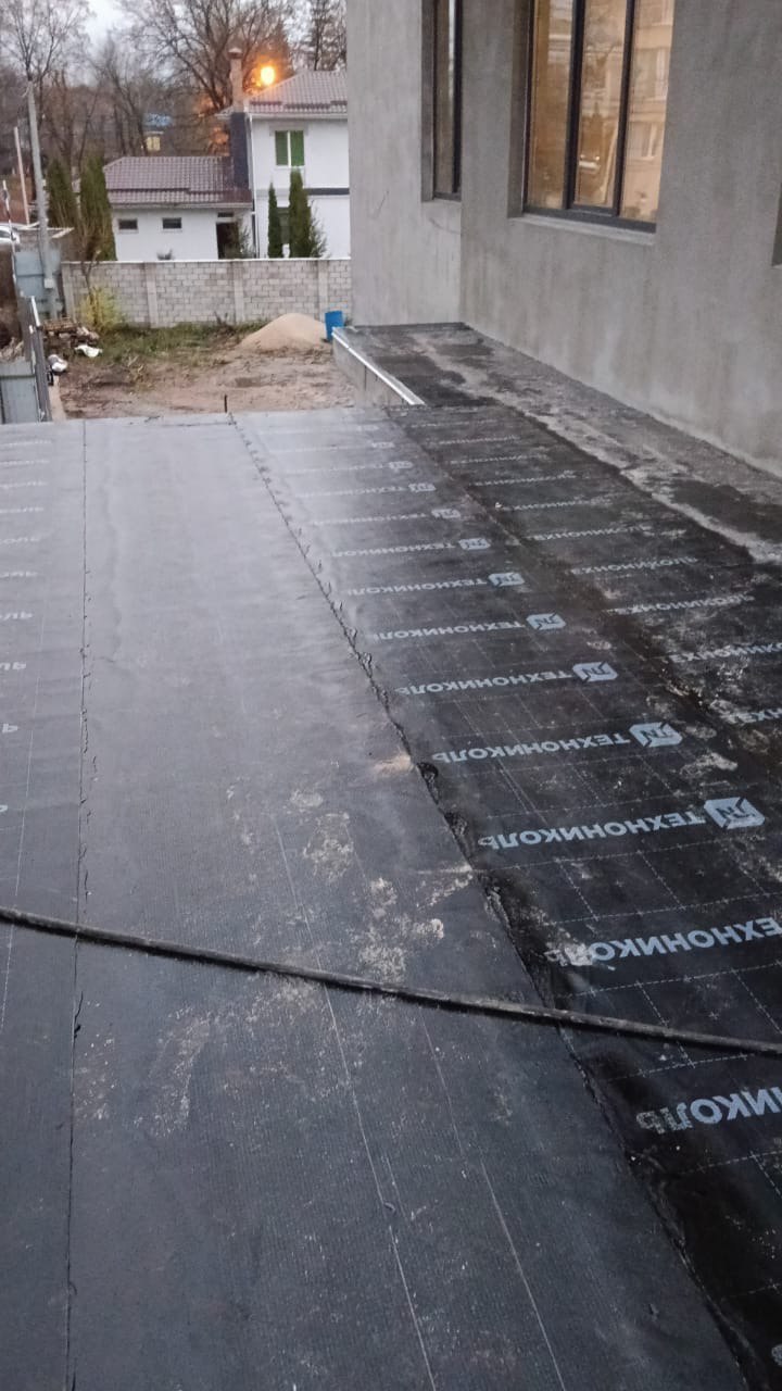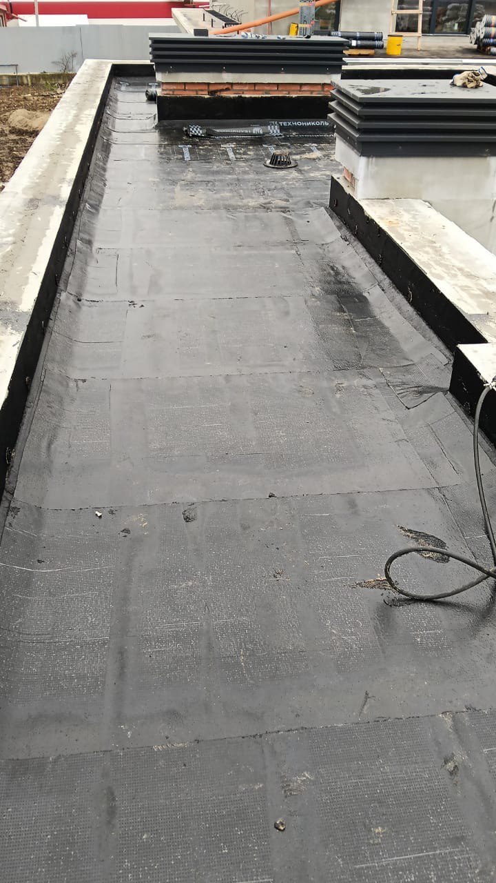 Гидроизоляция выполнена тремя слоями рулонной кровли: