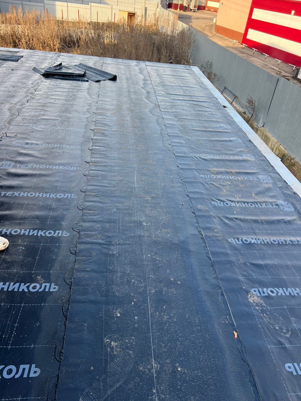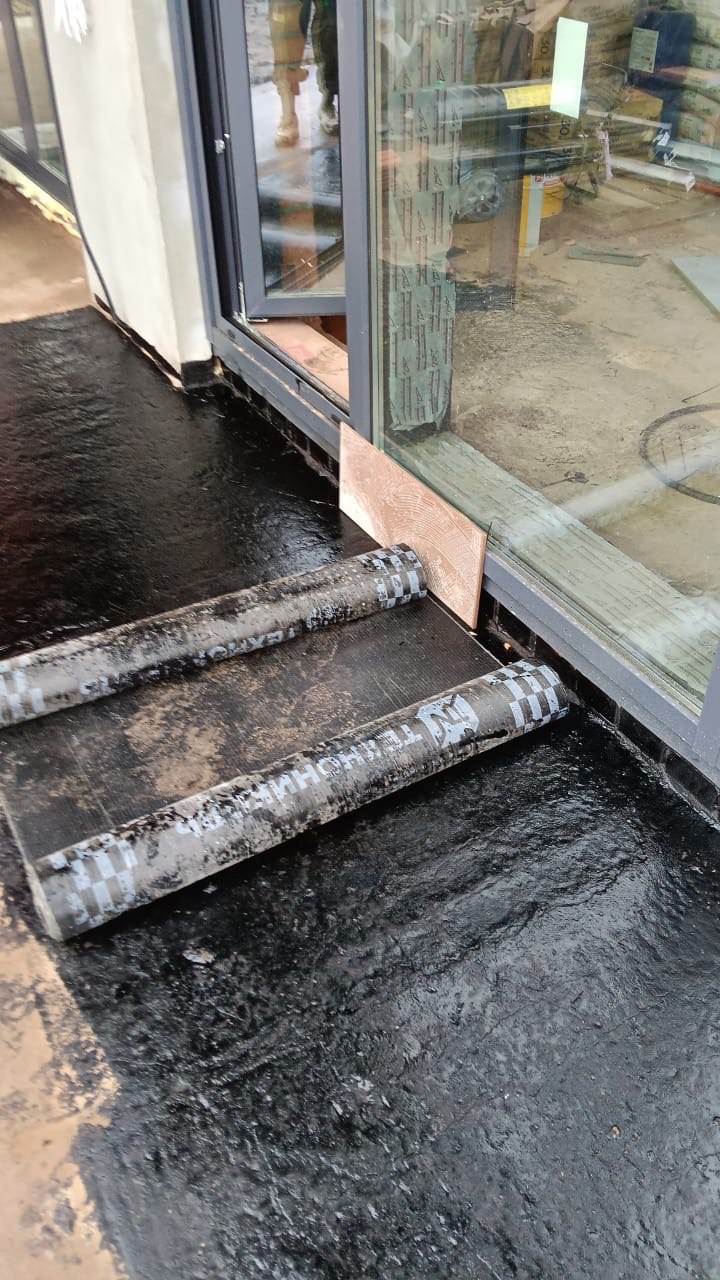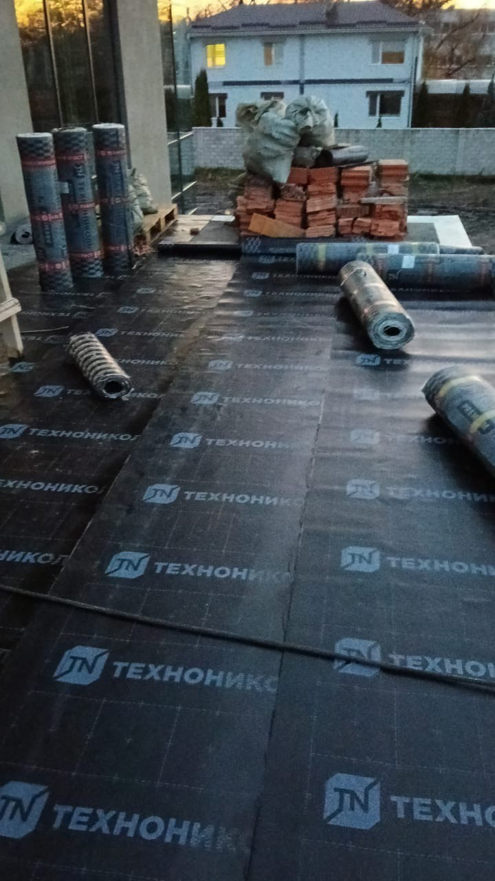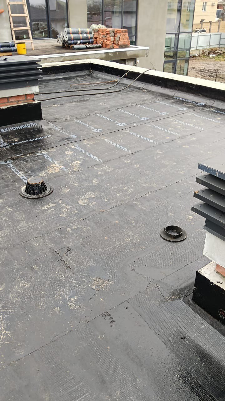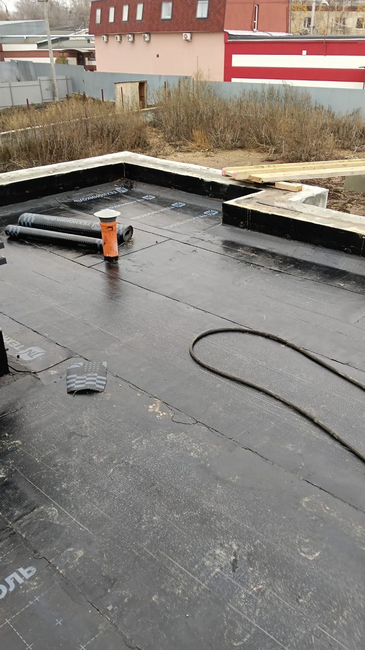 Гидроизоляция выполнена тремя слоями рулонной кровли: