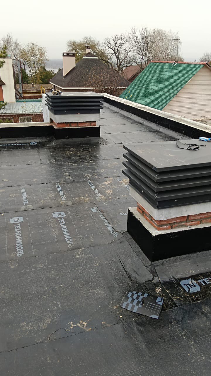 Выполнили устройство плоской кровли на частном коттедже площадью 250 м2 на 9-й просеке. Работы проводились на основном доме, бане и навесах первого и второго этажей. Все кровельные покрытия на объекте выполнены нашей командой.